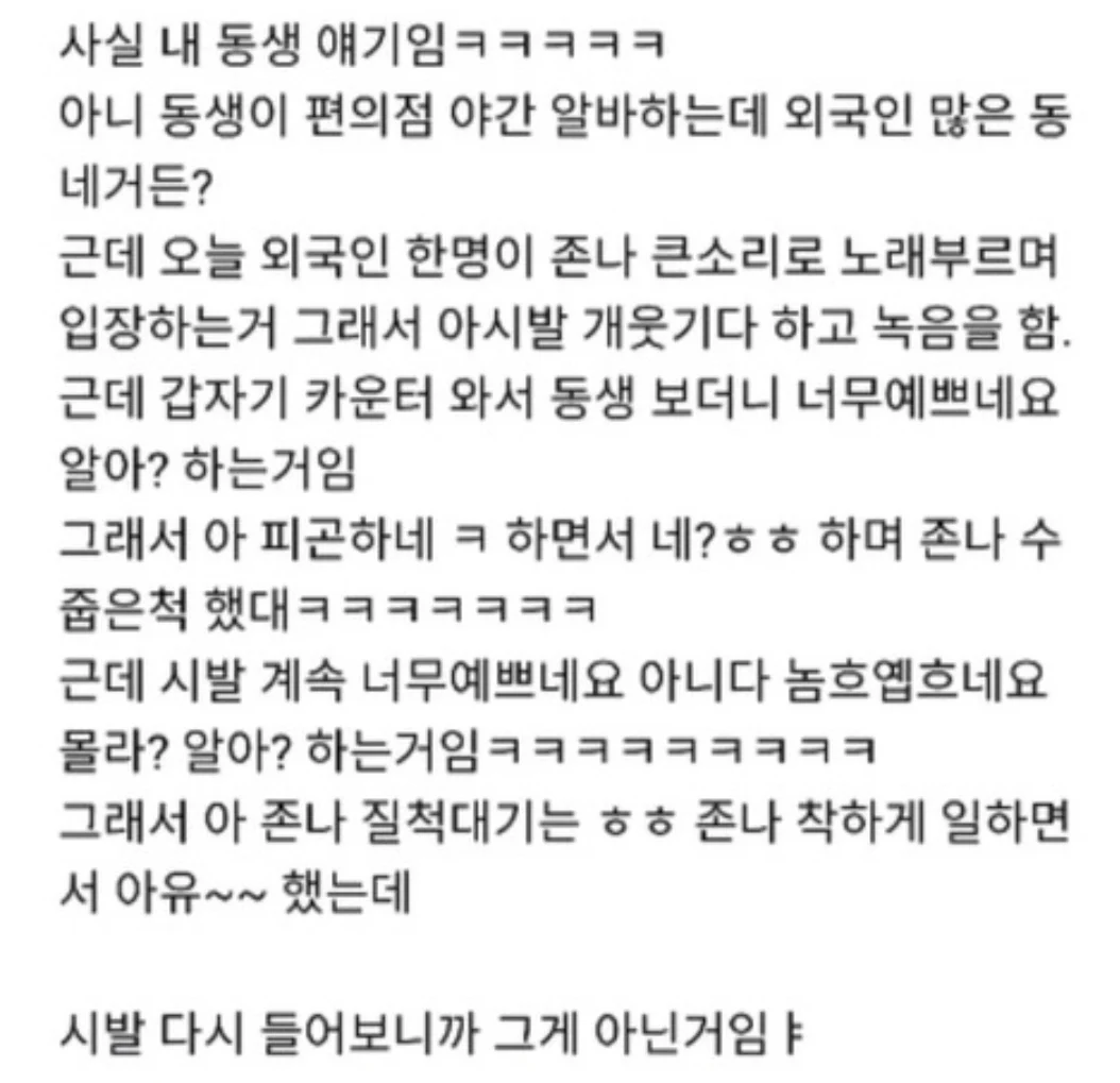 이 밈의 유래는 2010년대로 거슬러 올라가지만 최근에도 자주 쓰이는 드립 표현 중 하나입니다. 그 시작은 한 편의점 알바생의 외국인 에피소드였답니다.