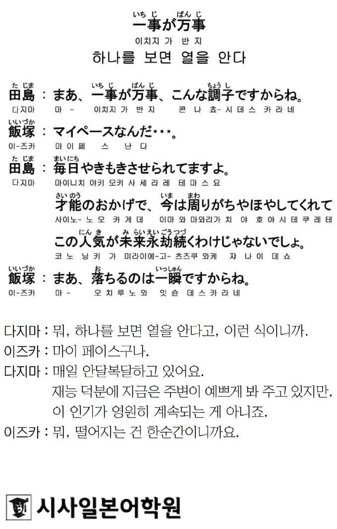 시사일본어학원에서 작성한 아래 예문에서도 치야호야라는 표현이 나오고 있습니다.