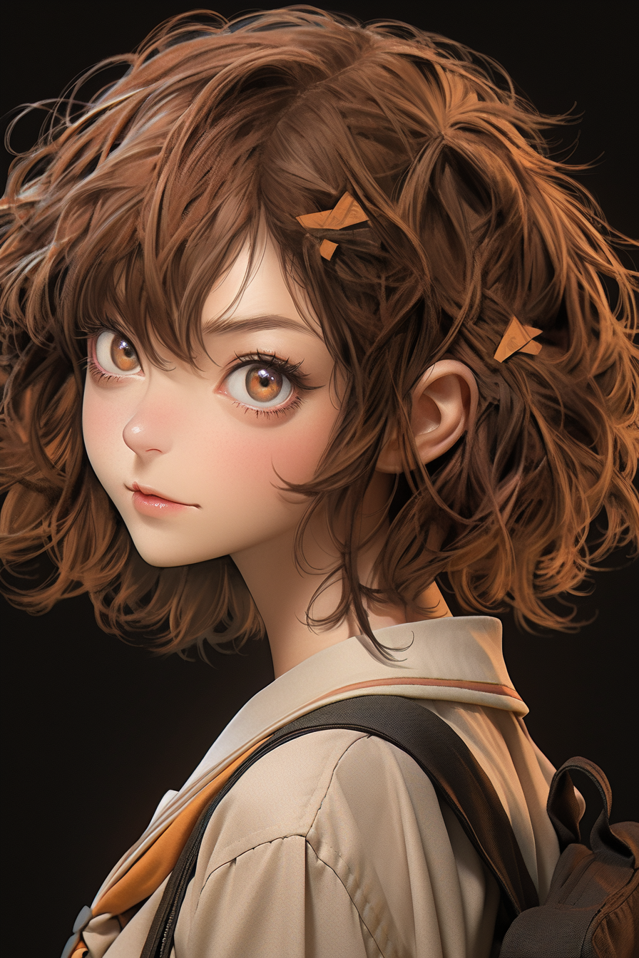 best quality, schoolgirl, serafuku, portrait, hyper-realistic but stylized, zbrush, style of realistic and hyper-detailed renderings, detailed pretty face, detailed brown hair, shiny eyes, I can't believe how beautiful this is --s 400 --no letterbox --ar 2:3 --niji 5 --style expressive